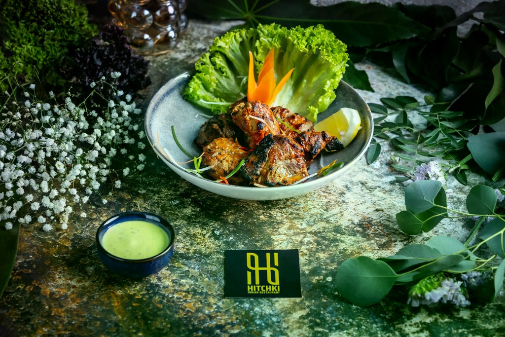 Grillezett bárányfilé darabok hagymás, zöld chilipaprikás fűszerkeverékkel ízesített paradicsommártásban / Lamb ribs marinated in garlic-ginger, spicy yogurt and then grilled in tandoor