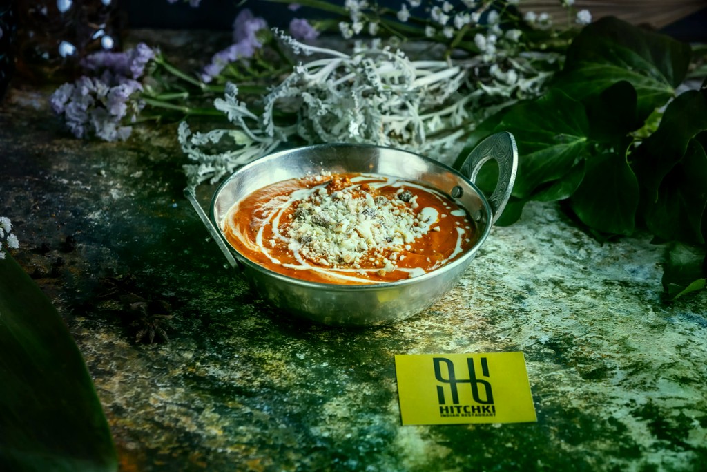 Pirított hagymával, fokhagymával, gyömbérrel, paradicsommal főtt tejszínes csirke manduladarabokkal / Chicken sauteed in onion, garlic, ginger, tomato ands cooked with almond and cream sauce
