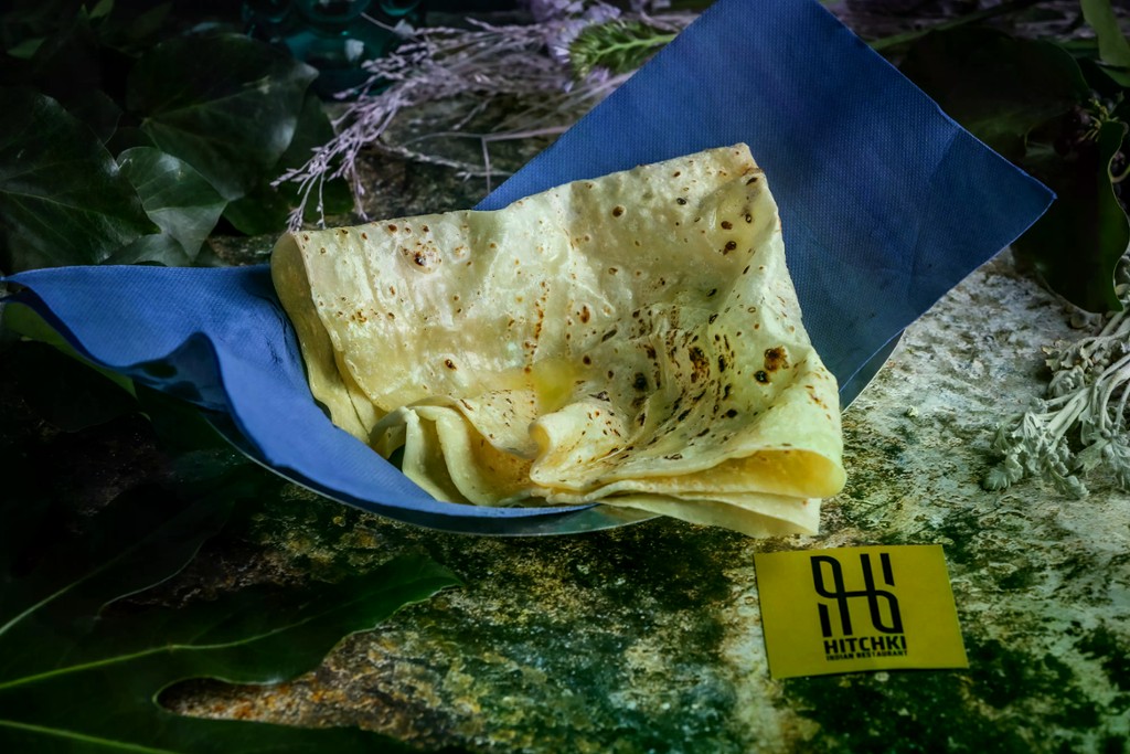 Puha, vékony és finom lepénykenyér, enyhén megkent vajjal / Soft, thin, and delicate flatbread, lightly brushed with butter