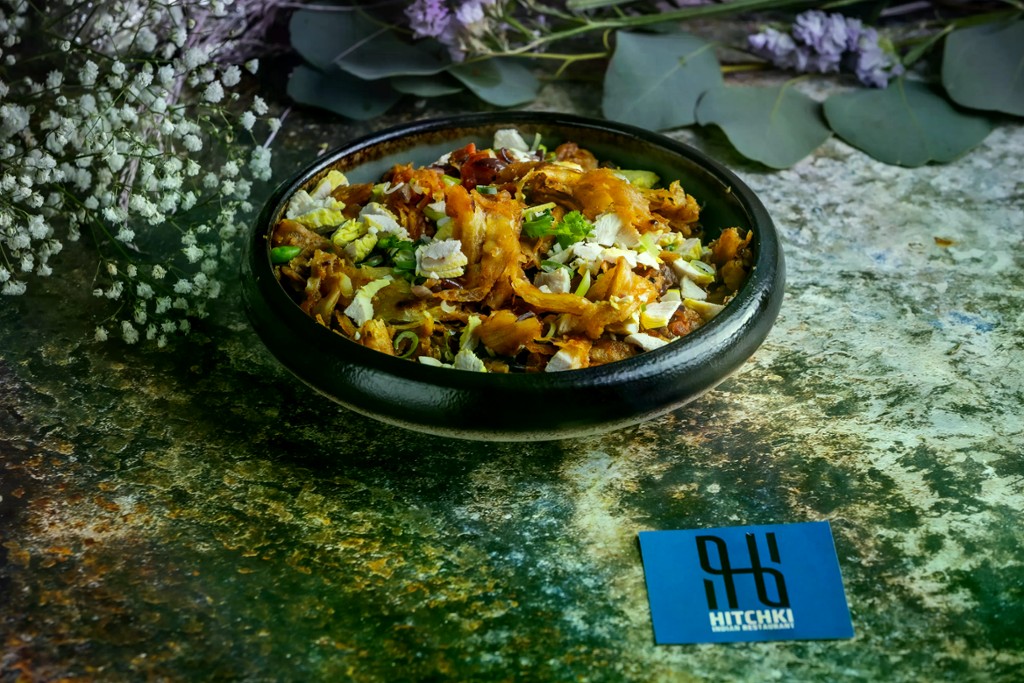 Aprított parotta rántva, zsenge fűszerezett csirkedarabokkal, zöldségekkel és aromás fűszerekkel / Shredded parotta stir-fried with tender pieces of spiced chicken, vegetables, and aromatic spices