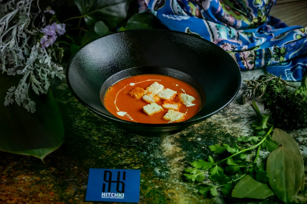 Friss paradicsomból készült krémleves indiai fűszerekkel és krutonnal / Fresh tomato soup made with Indian spices and crouton
