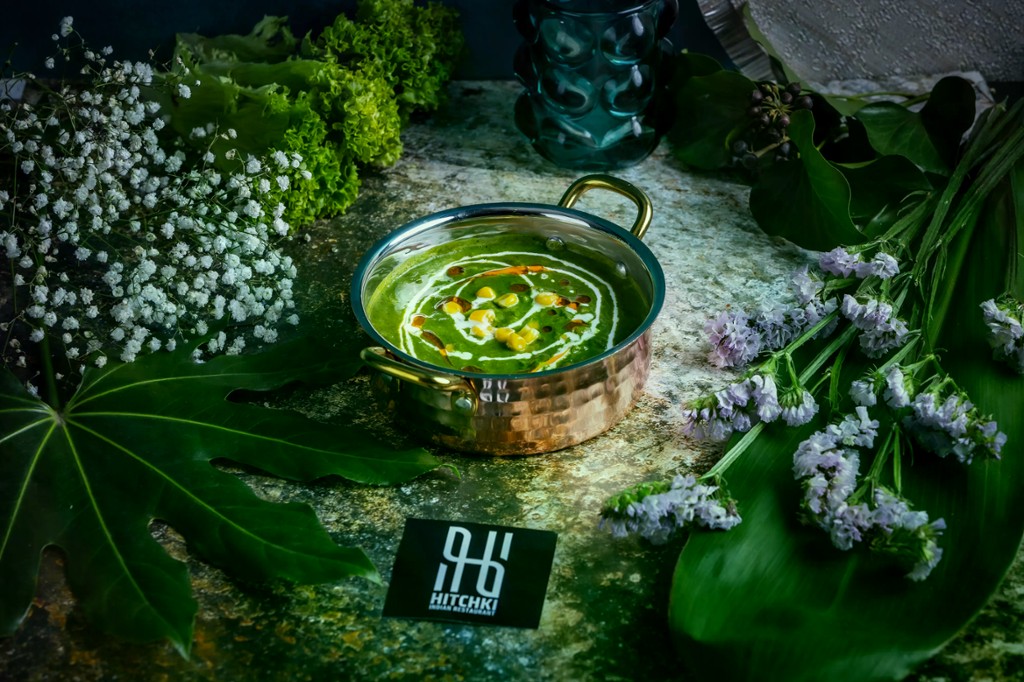 Csemegekukorica szemek friss spenóttal enyhén fűszerezett, krémes mártásban / Sweet corn kernels cooked with fresh spinach in a mildly spiced, creamy gravy