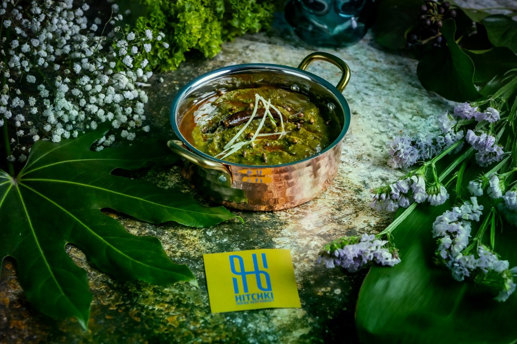 Tradicionális módon elkészített pundzsábi étel, mustárlevelek spenóttal, zöld chilivel, fokhagymával, hagymával és gyömbérrel / Traditional Punjab dish, mustard leaves with spinach, green chilli, garlic and ginger