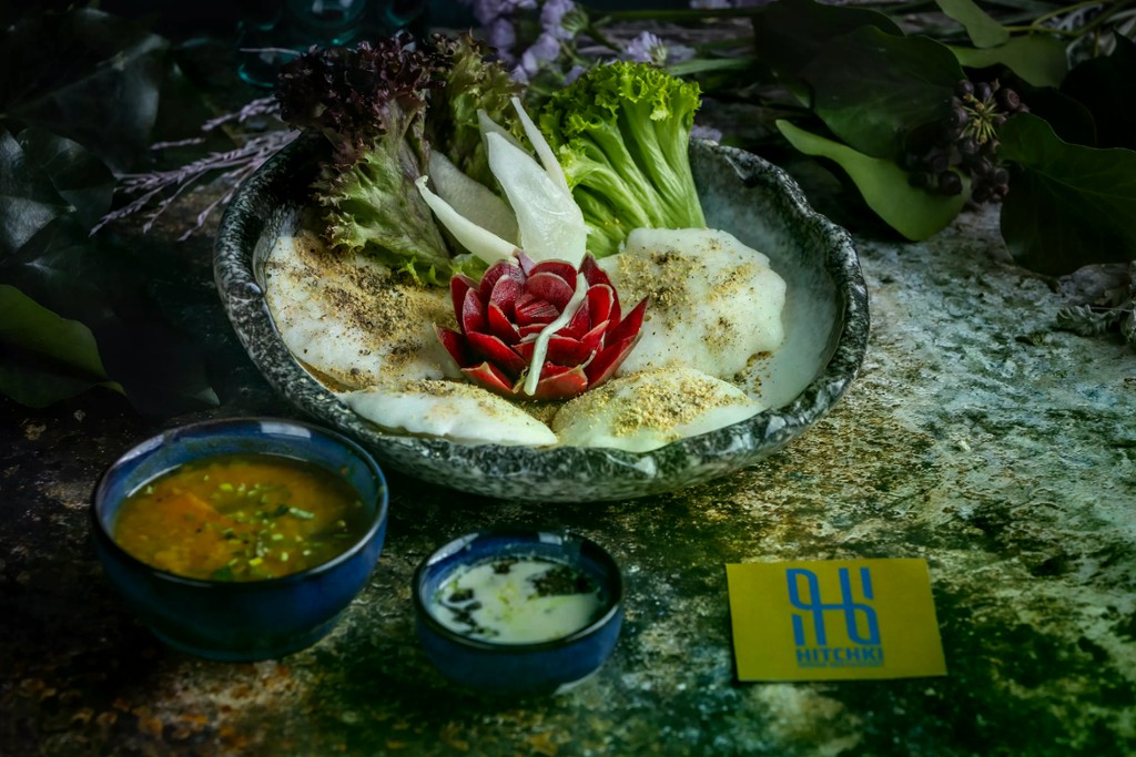 Lágy idli aromás és fűszeres paprikapodi (puskapor) keverékkel bevonva, sambarral és kókusz csatnival tálalva / Soft idlis coated with a aromatic and spicy pepper podi (gunpowder) mix, served with sambar and coconut chutney