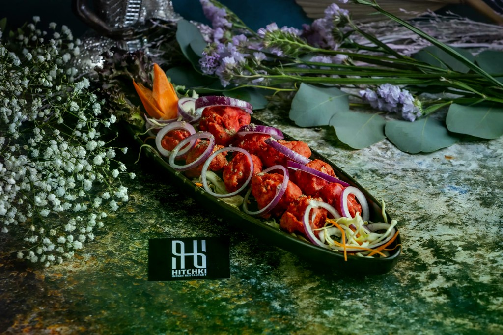 Ropogós, aranyszínű sült karfiol virágok ízes, fűszeres pácba bevonva / Crispy, golden-fried cauliflower florets coated in a flavorful, spicy marinade